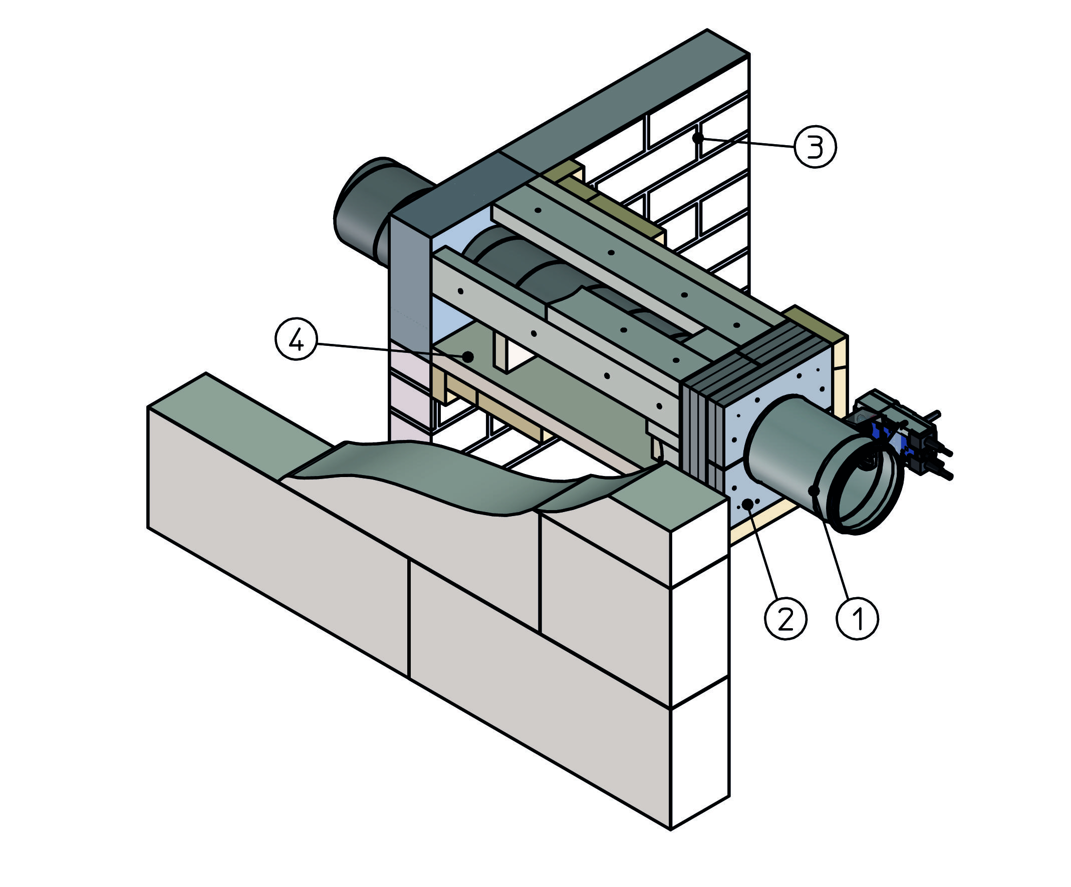 • Lightweight partition walls with metal support structure, and with the duct cladding penetrating the wall
