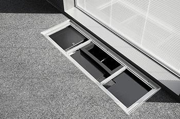 Bei der fassadenintegrierten Lüftungstechnik der Serie FSL-U-ZAS werden die Unterflurlüftungsgeräte im Hohlraumboden des Gebäudes fassadennah eingebaut. EC-Radialventilatoren mit hohen Wirkungsgraden saugen deshalb die Außenluft auf kürzestem Wege an. Danach strömt die Luft durch eine motorisierte Absperrklappe, Feinstaubfilter. Wärmerückgewinner und Heiz-/ Kühlregister in die Räume. Sämtliche Komponenten zur Filtration, Wärmerückgewinnung und der thermischen Behandlung der Luft sind im Gerät bereits montiert.