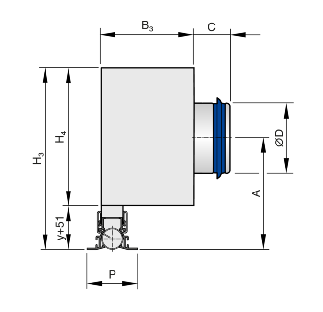 Position of the spigot, defined by the distance of the spigot centre line to the lower edge of the suspended ceiling