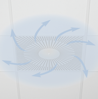 Circular and square ceiling swirl diffusers for high volume flow rates at low sound power levels and low differential pressure |